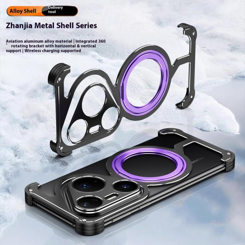 Protege tu Huawei Pura 80 Pro con esta funda de aleación de aluminio de calidad aeronáutica. Cuenta con soporte giratorio de 360°, diseño anticalentamiento ventilado, protección reforzada en las esquinas y compatibilidad con carga MagSafe. Incluye protección total para objetivos fotográficos.