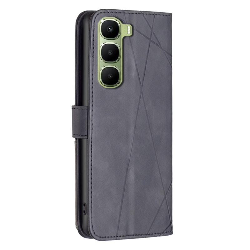 Descubre esta elegante funda cartera para el Infinix Hot 60 Pro 4G. Moderno diseño geométrico, 3 ranuras para tarjetas, compartimento para billetes y soporte plegable integrado. Protección completa contra los golpes y arañazos cotidianos.