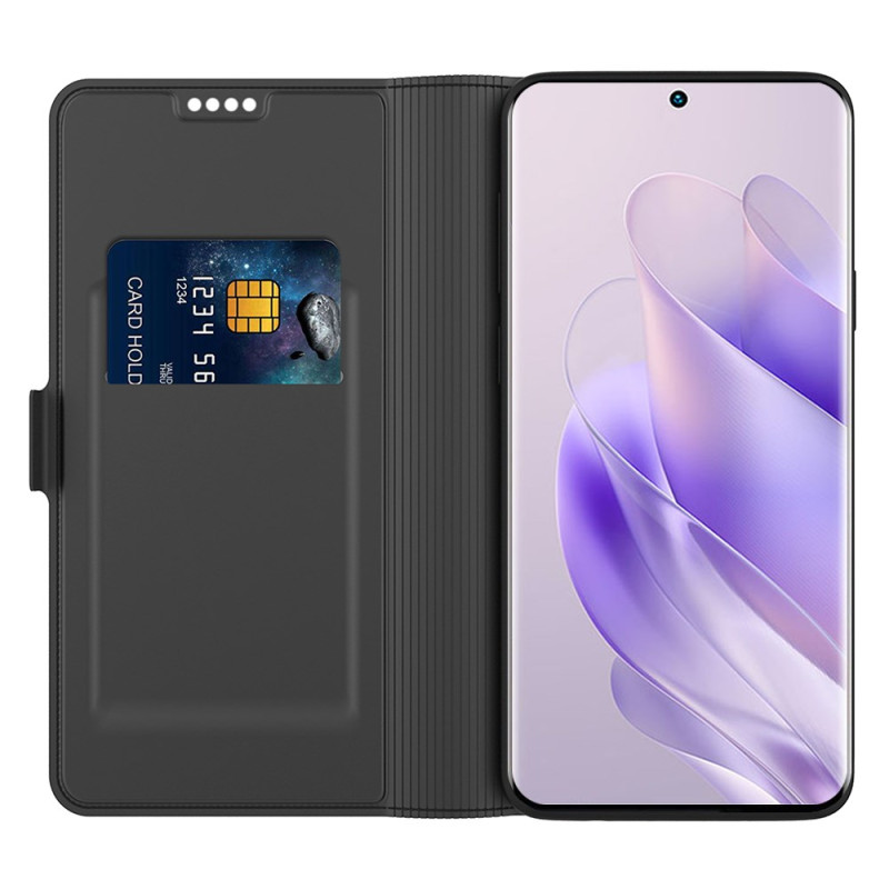 Protege tu Infinix Hot 60 Pro 4G con esta funda multifunción que combina elegancia y practicidad. Con tarjeteros integrados, función de soporte ajustable y cierre magnético seguro, ofrece una protección óptima contra golpes para el uso diario.