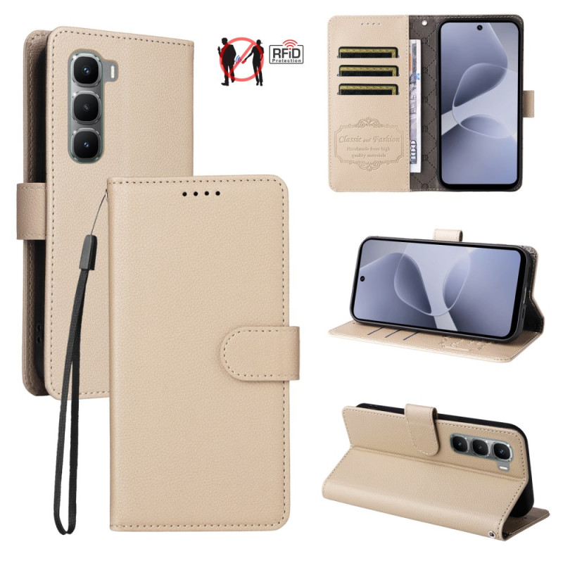 Protege tu Infinix Hot 60 Pro 4G con estilo gracias a esta funda cartera multifunción. Con tecnología de bloqueo RFID, protege tus datos bancarios y ofrece 3 ranuras para tarjetas y un bolsillo para el efectivo.