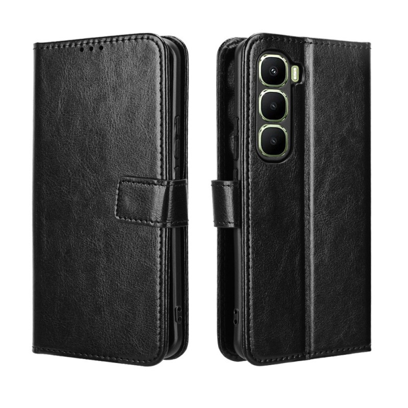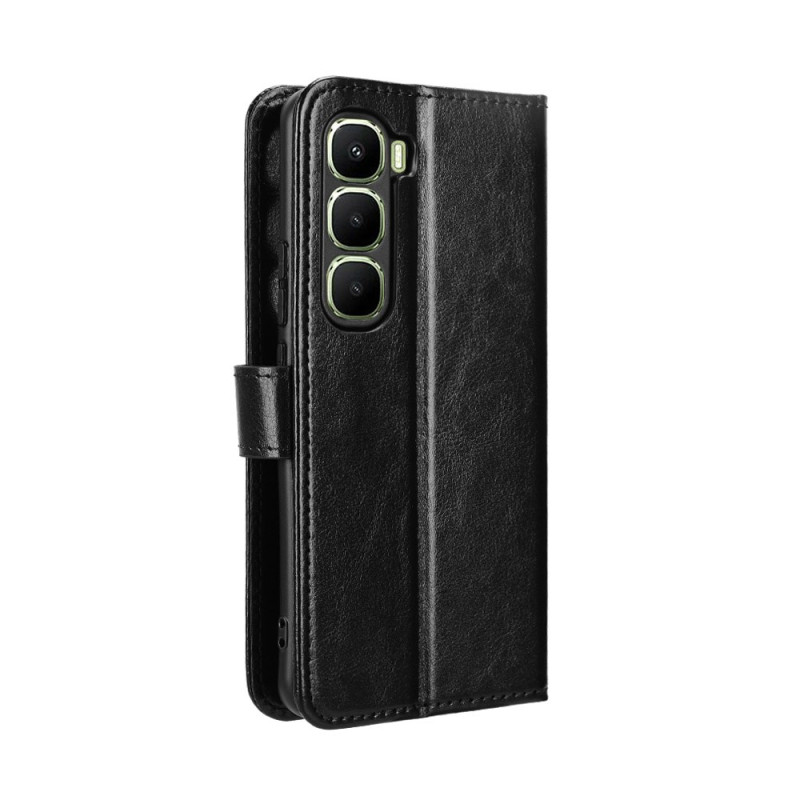 Elegante funda tipo cartera para Infinix Hot 60 Pro 4G con textura de piel granulada. Incluye 3 ranuras para tarjetas, 1 compartimento para billetes, función manos libres y práctica colgante de mano. Protección completa con cierre magnético seguro.