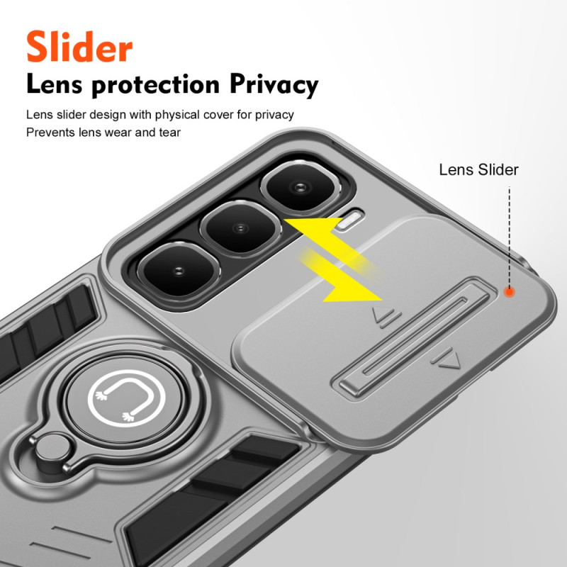 Protege tu Infinix Hot 60 Pro 4G con esta innovadora funda que incorpora una protección deslizante para la cámara, un anillo de soporte integrado y un pie de apoyo. Compatible con soportes magnéticos para coche, ofrece una protección completa.