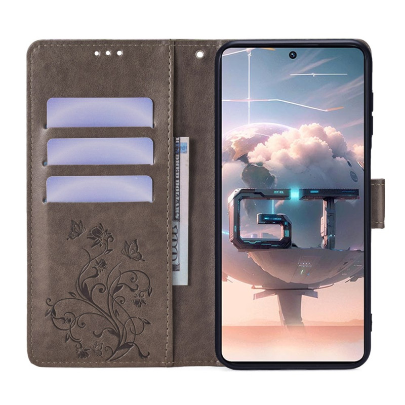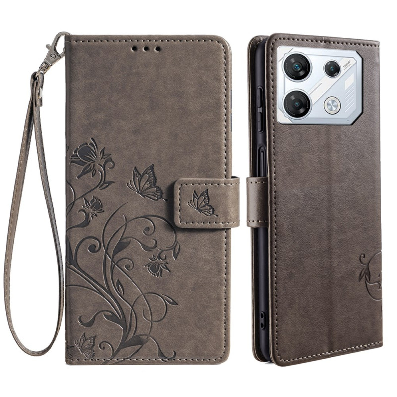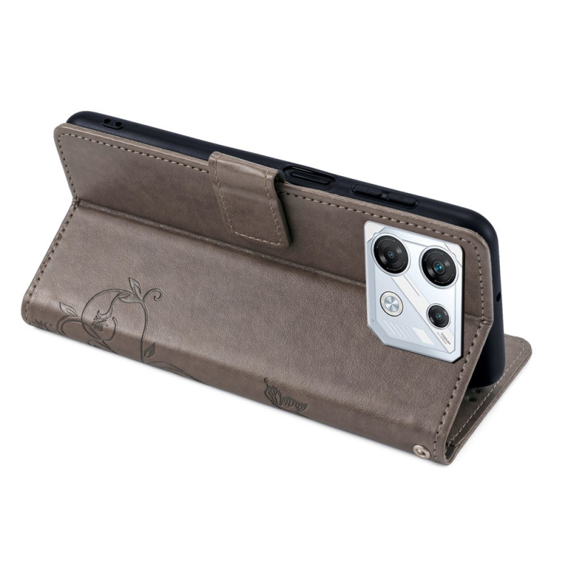 Protege tu Infinix GT 10 Pro 5G con estilo gracias a esta funda cartera de piel de PU. Diseño refinado con mariposa impresa y motivo floral, función manos libres, cierre magnético seguro y 3 ranuras para tarjetas.