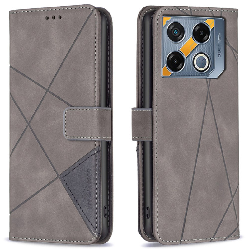 Elegante funda monedero para Infinix GT 20 Pro 5G con estampado geométrico en relieve. Combina protección total, soporte ajustable y funcionalidad de cartera con 3 ranuras para tarjetas.