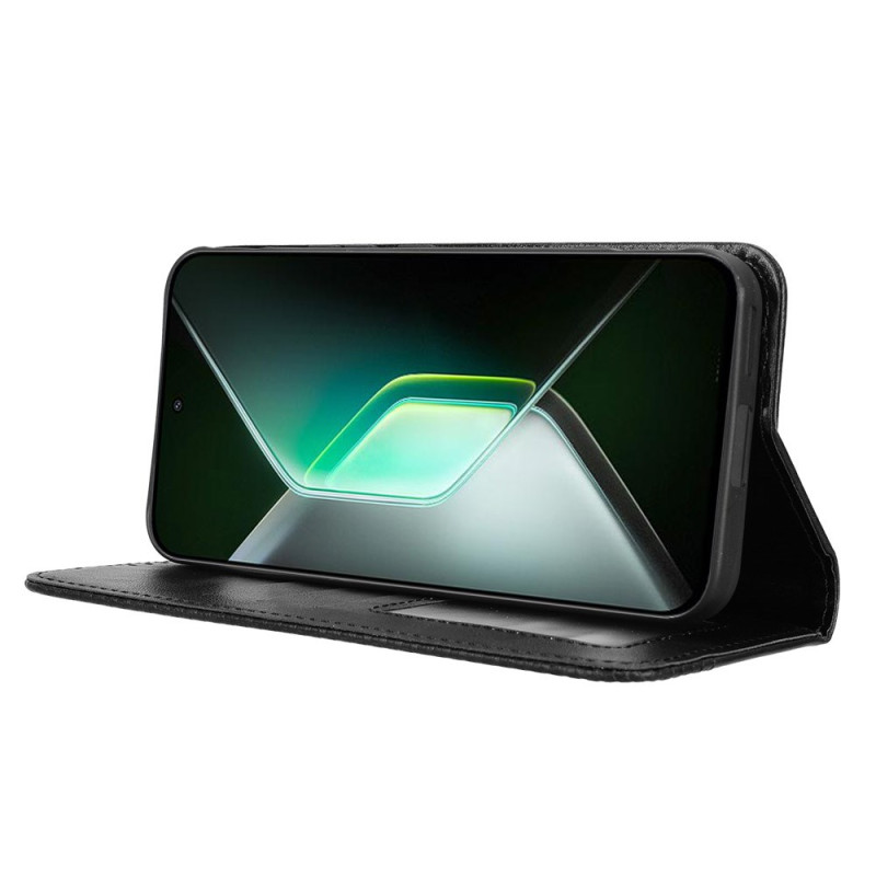 Protege tu Infinix GT 30 Pro 5G con estilo gracias a esta funda cartera retro. Con múltiples ranuras para tarjetas, un soporte ajustable y cierre magnético automático, combina el estilo vintage con la funcionalidad.