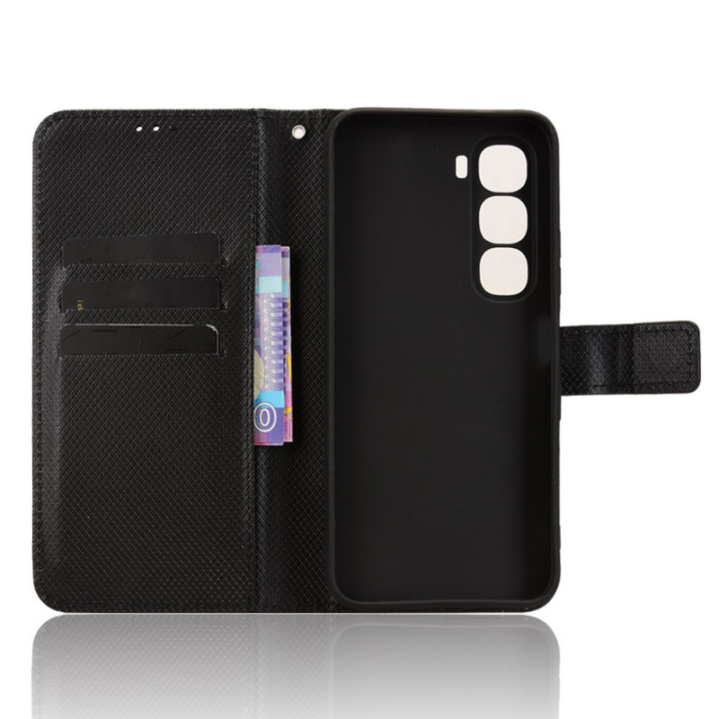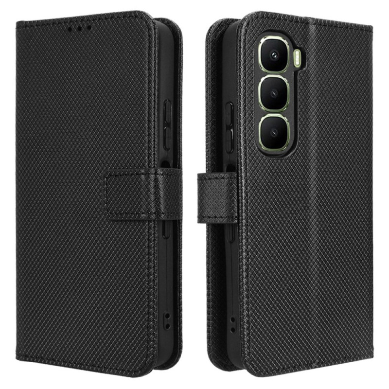 Proteja su Infinix Hot 60 5G / Hot 60i 4G con estilo gracias a esta funda tipo cartera de cuero PU con textura de diamante. Con ranuras para tarjetas, un soporte plegable y una práctica colgante para la muñeca, combina estilo y funcionalidad para una protección diaria completa.