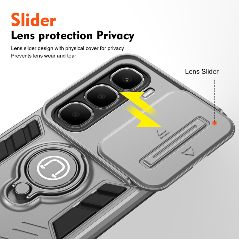Robusta protección de PC y TPU para tu Infinix Hot 60 5G. Con una innovadora funda deslizante para la cámara, anillo de soporte magnético y soporte de visualización integrado. Dale a tu smartphone una defensa completa contra los golpes.