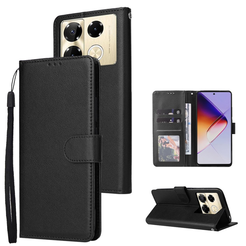 Elegante funda tipo cartera para Infinix Note 40 Pro 5G / 4G / 40 Pro Plus 5G con múltiples ranuras para tarjetas, soporte plegable integrado y cierre magnético seguro. Diseño práctico con colgante de mano para facilitar el transporte diario.