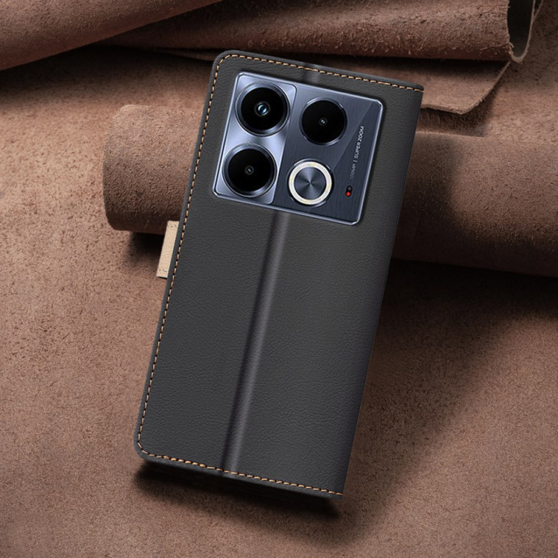 Proteja su Infinix Note 40 con estilo gracias a esta funda cartera de piel de primera calidad. Con tecnología anti-RFID, protege tus datos bancarios y ofrece 3 ranuras para tarjetas y un bolsillo para el efectivo.