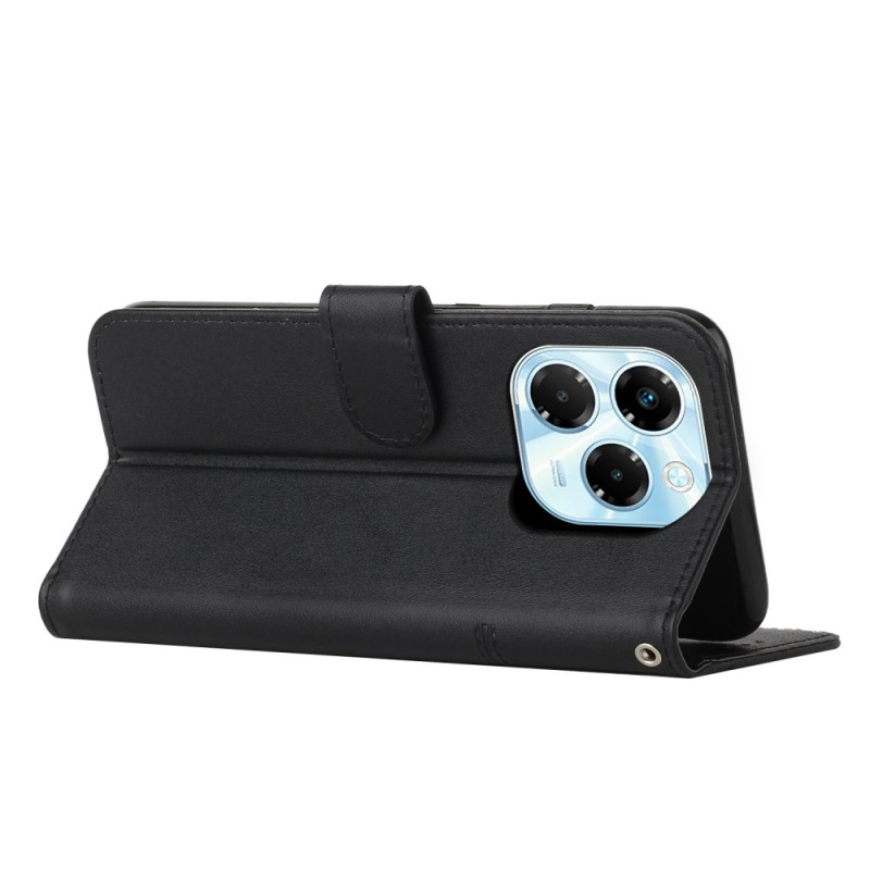 Elegante funda cartera en piel de PU texturizada para Infinix Note 40X 5G. Función manos libres, 2 ranuras para tarjetas, cierre magnético seguro. Protección total contra los golpes cotidianos con práctica colgante de mano incluida.