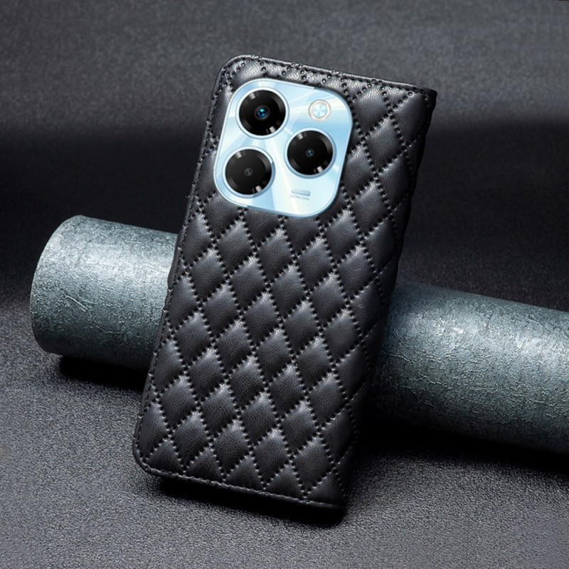 Descubre la funda BINFEN COLOR para el Infinix Note 40X 5G, que combina elegancia y practicidad. Su diseño con patrón de diamantes en cuero PU de primera calidad ofrece una protección completa. Funcional con 3 ranuras para tarjetas, compartimento para efectivo y soporte ajustable.
