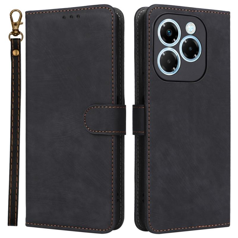 Sofisticada funda cartera de cuero PU para Infinix Note 40X 5G. Protección RFID integrada, 3 ranuras para tarjetas y monedero. Soporte manos libres ajustable y cierre magnético seguro. Colgante de mano incluida para facilitar su transporte.