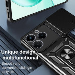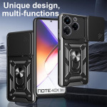 Proteja su Infinix Note 40X 5G con esta funda resistente que incluye protección deslizante para la cámara, un soporte giratorio multiángulo y resistencia a impactos de grado militar. Compatible con soporte magnético para coche.