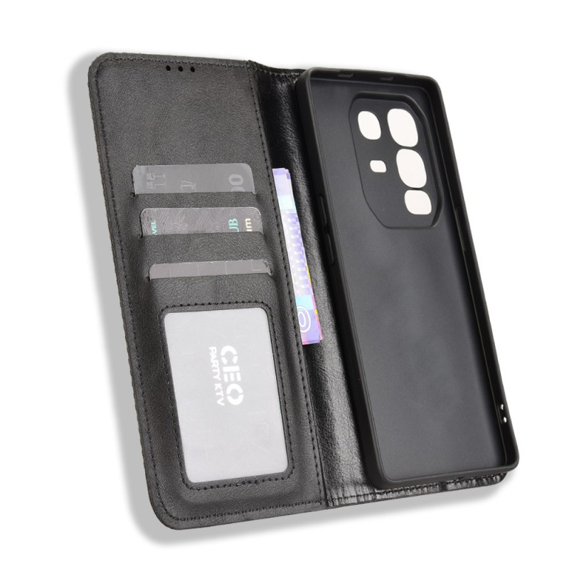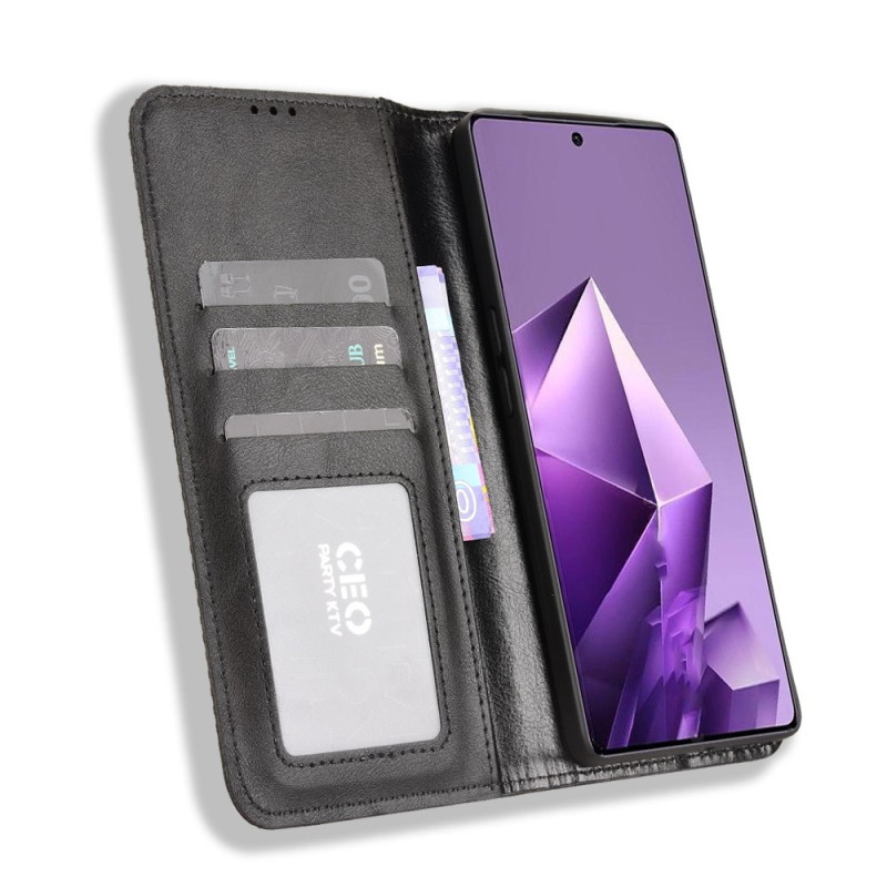 Protege tu Infinix Note 50 Pro Plus 5G con estilo gracias a esta funda cartera retro. Con múltiples ranuras para tarjetas, un soporte ajustable y cierre magnético automático, combina el estilo vintage con una protección integral.