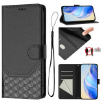 Elegante funda tipo cartera para Infinix Note 50S 5G con diseño de panal de abeja grabado. Con protección RFID, 3 ranuras para tarjetas, soporte manos libres y una práctica colgante de mano para una seguridad óptima.