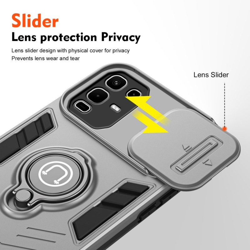 Protege tu Infinix Note 50S 5G con esta innovadora funda que incluye una protección deslizante para la cámara, un anillo de apoyo y un soporte integrado. Compatible con soportes magnéticos para coche, ofrece una protección completa contra golpes y arañazos.