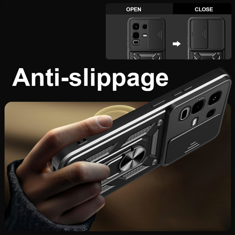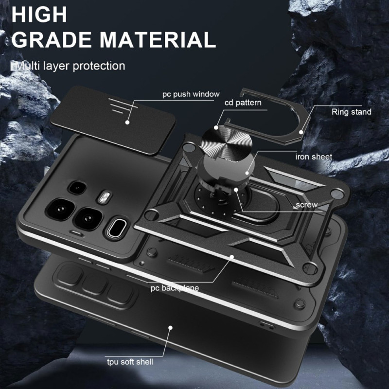 Protege tu Infinix Note 50s 5G con esta funda resistente que incorpora una innovadora protección deslizante para la cámara, un soporte giratorio integrado y resistencia a impactos de grado militar. Compatible con soportes magnéticos para coche.