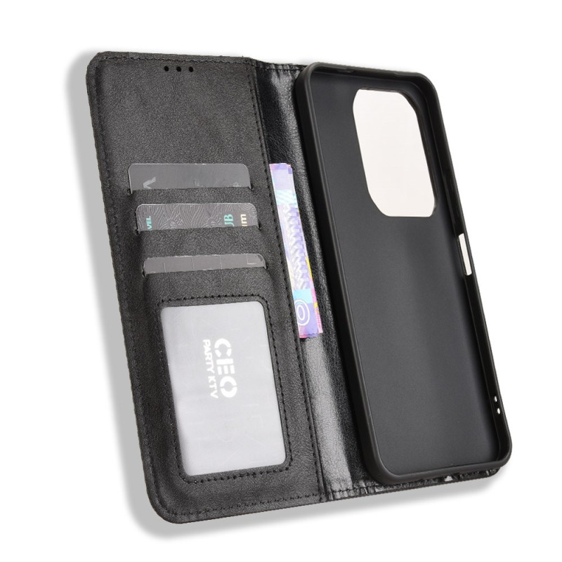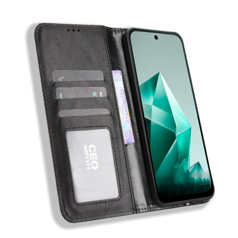Protege tu Infinix Note 50X 5G con estilo gracias a esta funda cartera retro de piel de PU. Con ranuras para tarjetas, soporte ajustable y cierre magnético automático, combina la elegancia vintage con una protección integral.