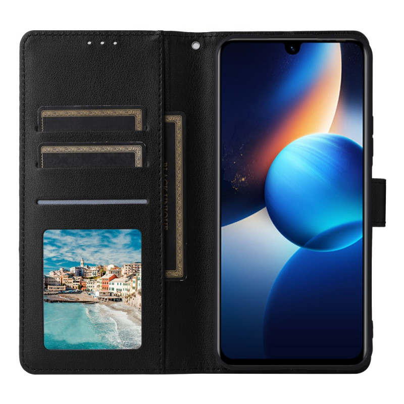 Elegante funda cartera de cuero PU para Infinix Zero 20 4G. Diseño práctico con ranuras para tarjetas, soporte plegable y cierre magnético seguro. Ideal para proteger tu teléfono y tener a mano todo lo que necesitas.