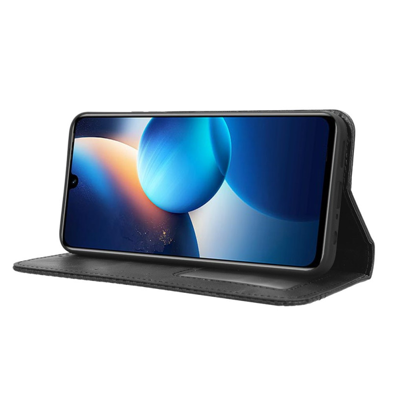 Funda cartera retro para Infinix Zero 20 4G X6821 que ofrece una protección completa. Cuenta con múltiples ranuras para tarjetas, cierre magnético automático y soporte ajustable para una visualización manos libres.