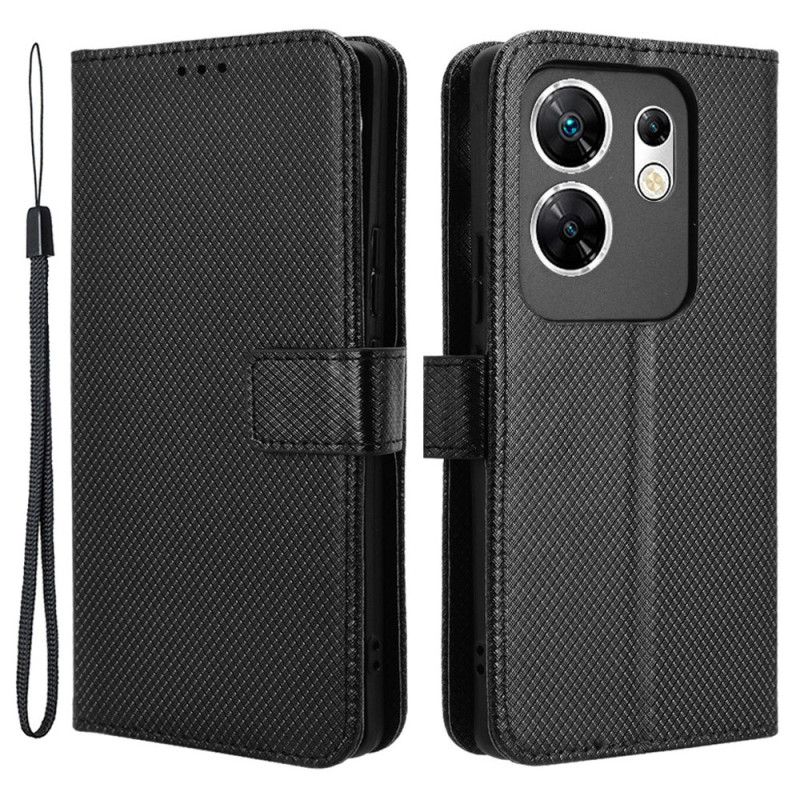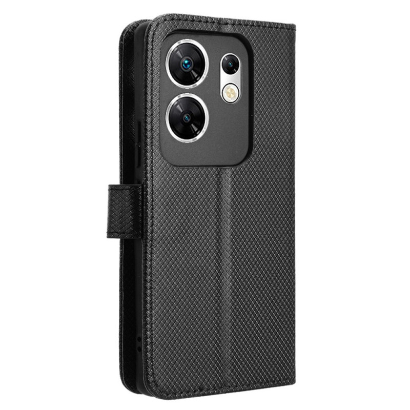 Elegante funda cartera que combina estilo y protección para tu Infinix Zero 30 4G X6731B. Sofisticado diseño con textura de diamante, ranuras para tarjetas integradas y bolsillo para el dinero. Soporte plegable para una visualización manos libres.