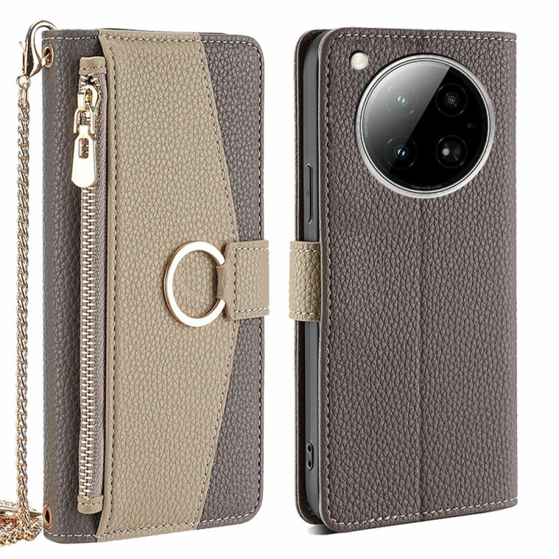 Elegante funda tipo cartera para Infinix Zero 40 4G con espejo integrado y colgante de cadena. Combina protección premium y funcionalidad con 3 ranuras para tarjetas, compartimento para billetes y bolsillo con cremallera.
