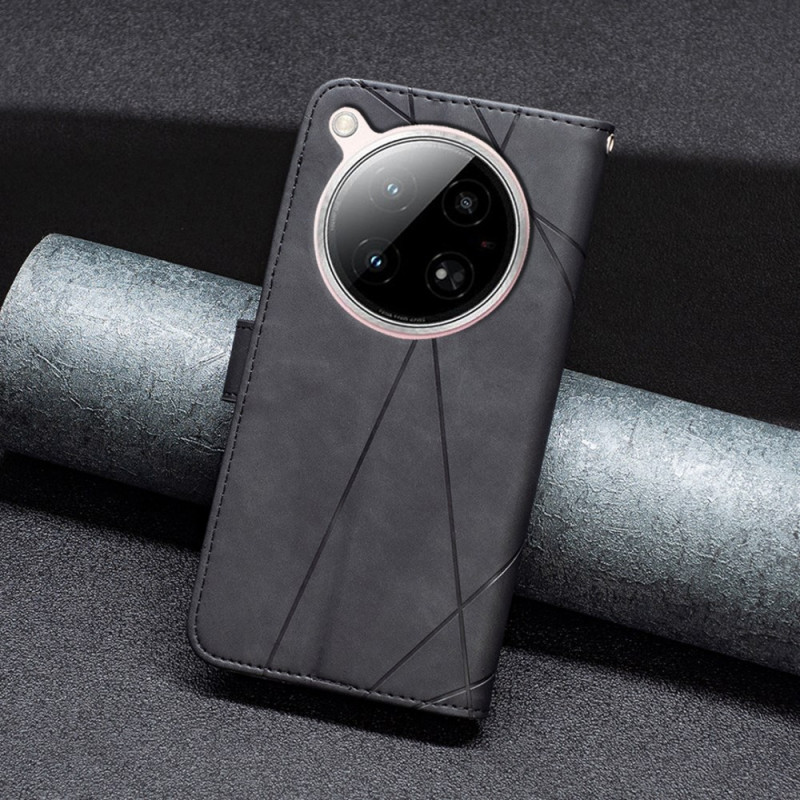 Elegante funda cartera para Infinix Zero 40 4G que combina estilo y funcionalidad. Moderno diseño geométrico, soporte ajustable integrado, 3 ranuras para tarjetas y cierre magnético seguro. Protección completa contra golpes y arañazos.