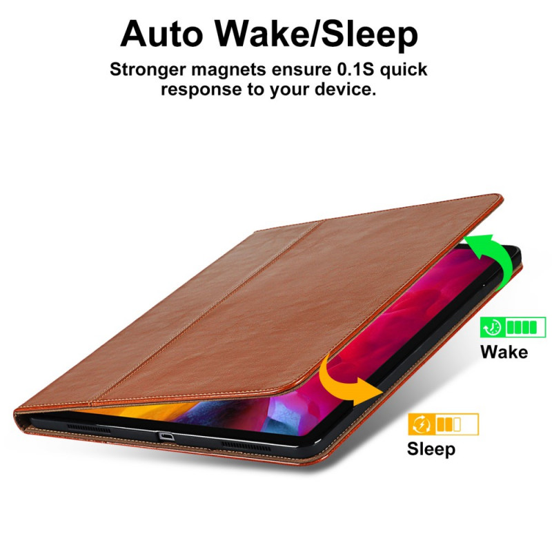 La funda de piel auténtica ofrece una protección premium para tu iPad Pro 12,9" (2022) (2021) (2020) y sirve también como soporte manos libres.