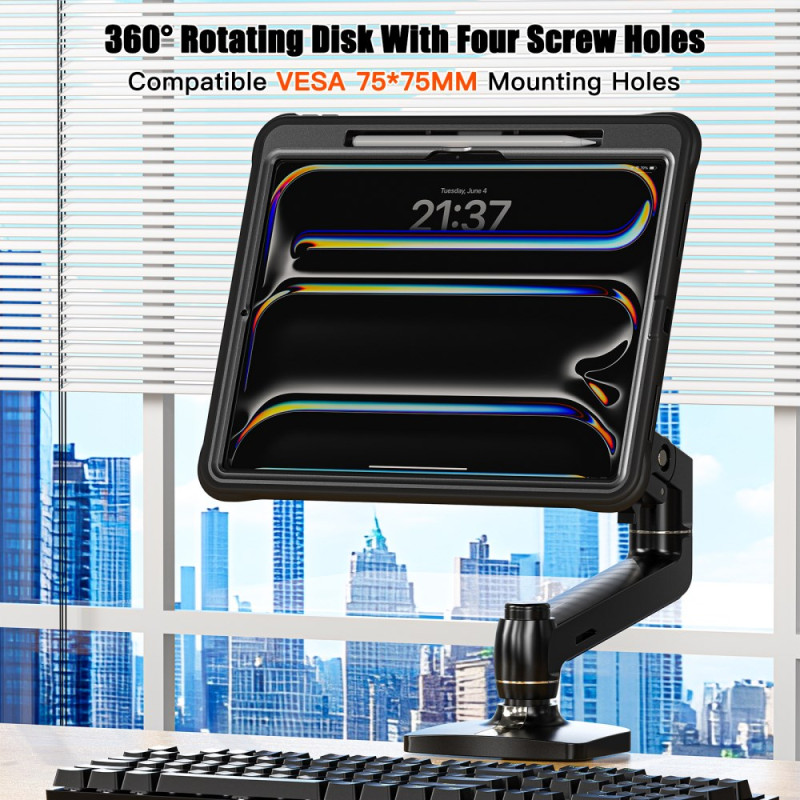 Descubre nuestra robusta y versátil funda para iPad Pro 13. Con compatibilidad VESA, protección de 360°, absorción de impactos mejorada y un soporte integrado, ofrece una protección completa y una funcionalidad óptima. Disfruta de un diseño a prueba de polvo y una construcción multicapa duradera para un uso diario sin preocupaciones.