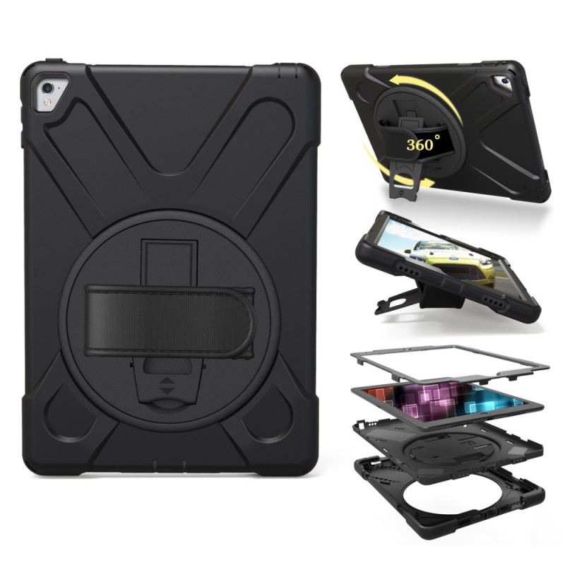 Protection triple couche ultra-résistante pour votre iPad Pro 9.7 pouces (2016). Design X-Shape innovant combinant PC rigide et TPU souple pour une absorption optimale des chocs. Support rotatif 360° intégré et bandoulière pour un confort maximal.