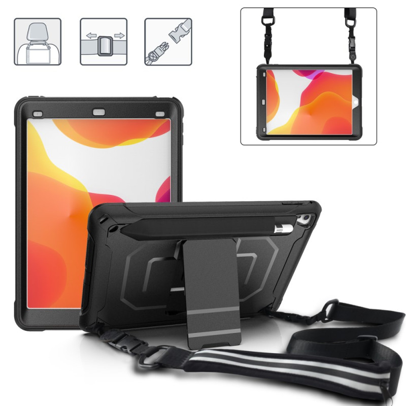 Protégez votre iPad avec style grâce à cette coque robuste à double couche. Son design blindé offre une protection optimale contre les chocs et les chutes. Dotée d'un support pliable réglable, d'un porte-stylet intégré et d'une bandoulière pratique, elle allie parfaitement sécurité et fonctionnalité pour un usage quotidien.