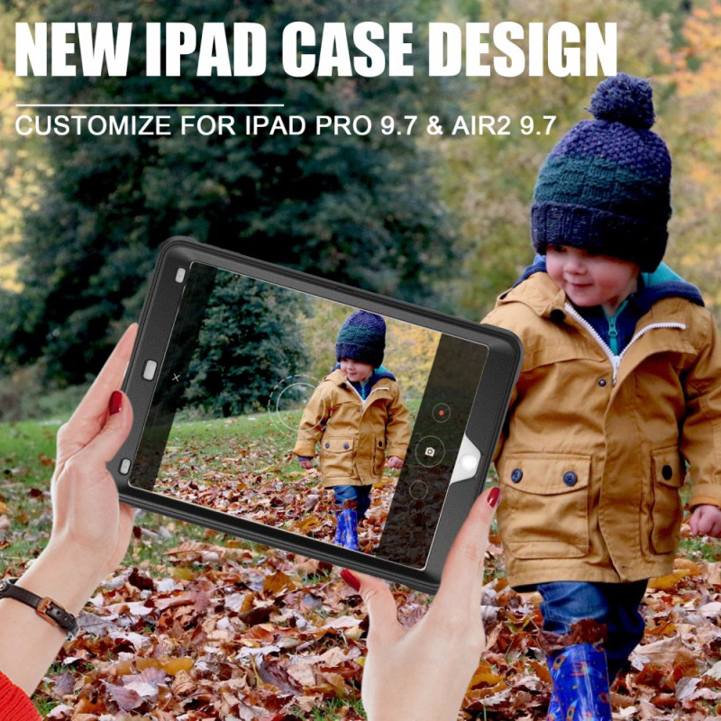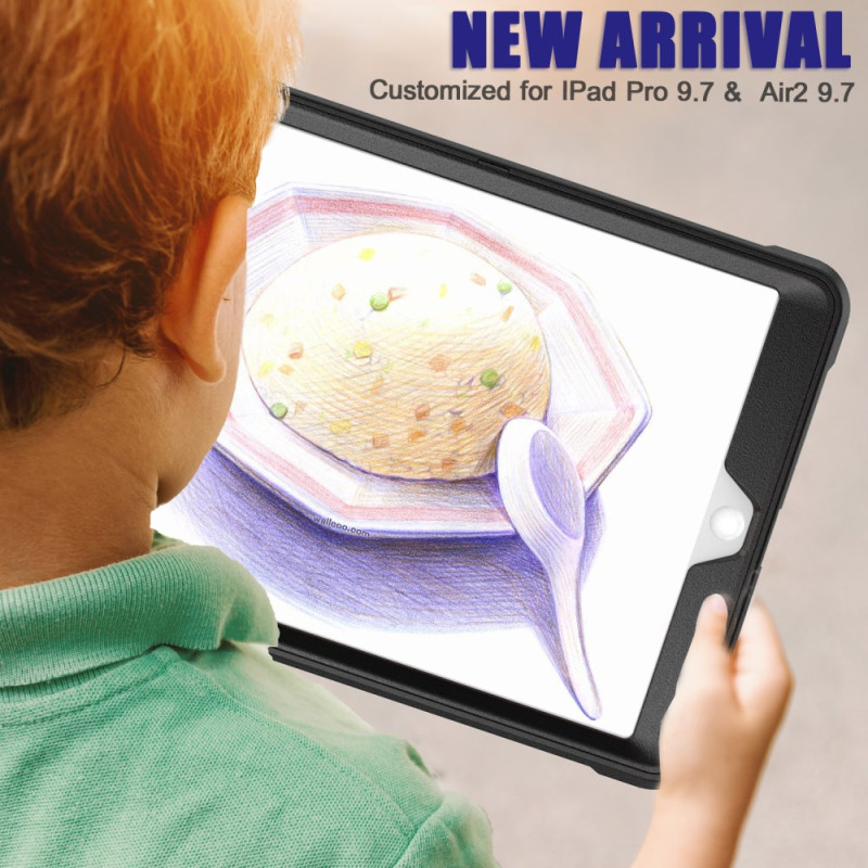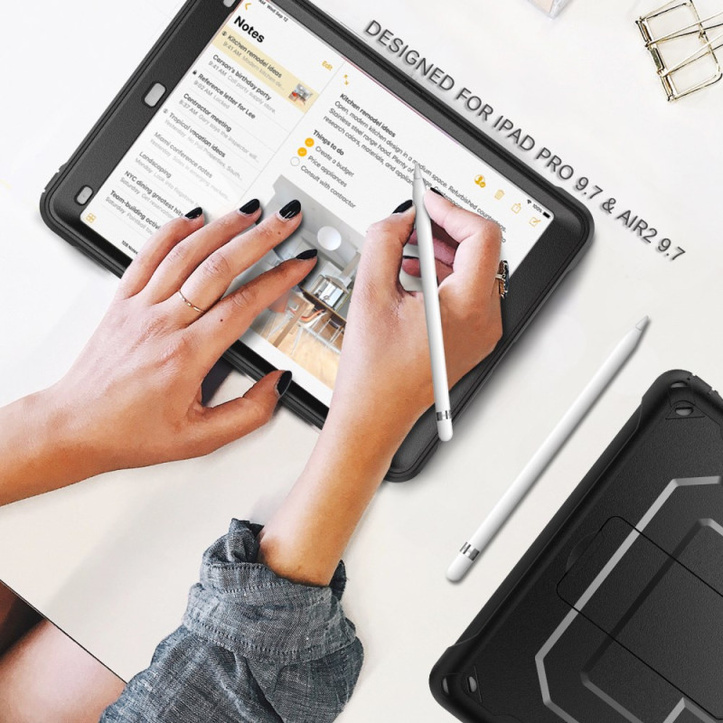 Protection optimale pour votre iPad Air 2 / iPad Pro 9.7 pouces avec cette coque robuste à double couche. Son design armure avec motif en relief offre une résistance exceptionnelle aux chocs. Équipée d'un support pliable réglable et d'un porte-stylet intégré pour une utilisation polyvalente au quotidien.