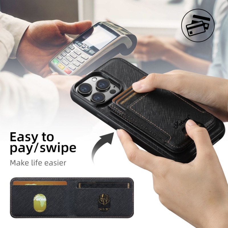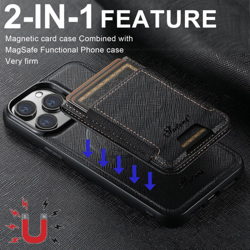 Descubre la funda SUTENI H17 para iPhone 12 / 12 Pro, que combina estilo y funcionalidad. Fabricada en piel de PU de calidad y TPU suave, ofrece una protección duradera con un elegante diseño texturizado. Su tarjetero magnético desmontable tiene capacidad para 3-4 tarjetas y actúa como soporte para un uso manos libres. Compatible con carga inalámbrica MagSafe y soportes magnéticos para coche.