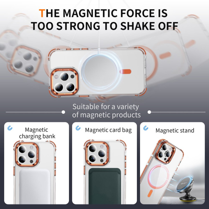 - Fuerte adsorción magnética: se adhiere firmemente al cargador de forma magnética. Compatible con todos los accesorios MagSafe, como la cartera, el soporte para anillos y la batería externa. Se puede fijar firmemente al soporte del teléfono del coche (soporte no incluido).