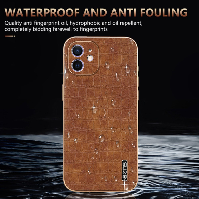 Descubre nuestra elegante funda para iPhone 12 con una sofisticada textura de cocodrilo. Fabricada con TPU de alta calidad y piel de PU, ofrece una protección excepcional contra golpes sin dejar de ser fina y ligera. Su lujoso diseño y acabado galvánico añaden un toque de estilo a tu dispositivo.