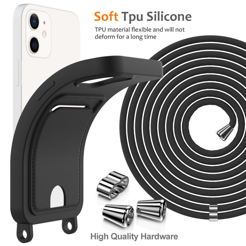Descubre nuestra innovadora funda para iPhone 12, que combina protección y practicidad. Fabricada con silicona líquida ultrasuave, se adapta perfectamente a la mano y es resistente a las huellas dactilares. Con su ranura para tarjetas integrada y su colgante ajustable de 160 cm, podrás tener tu teléfono y tus objetos esenciales al alcance de la mano.