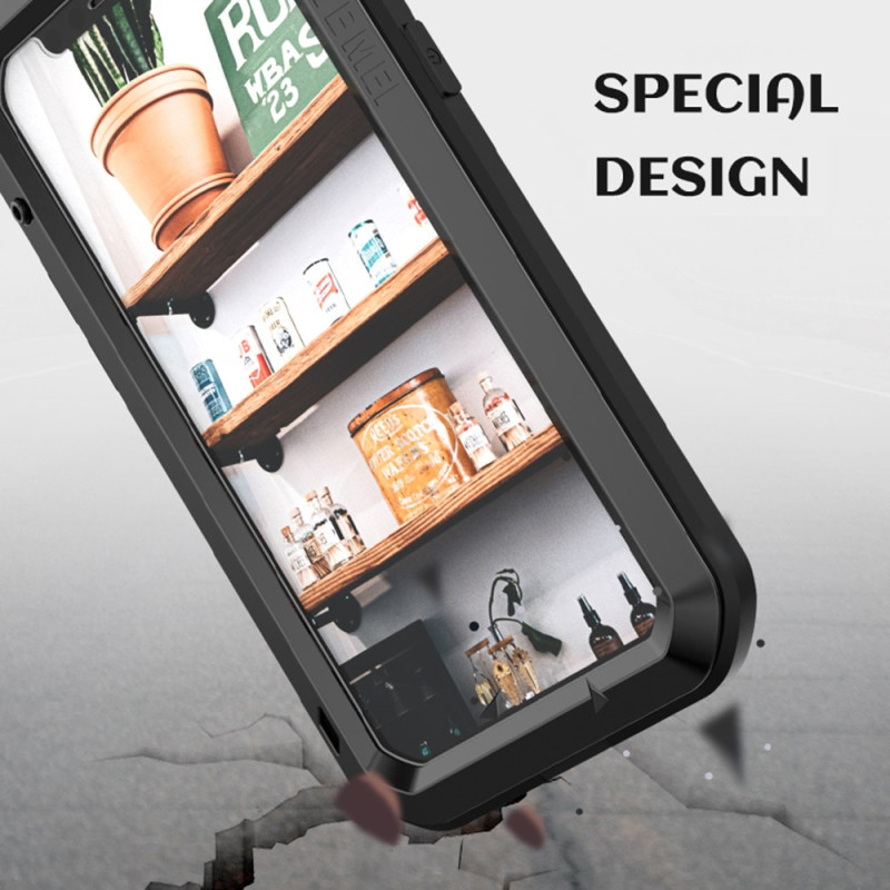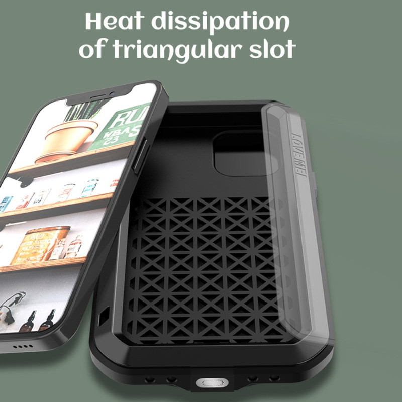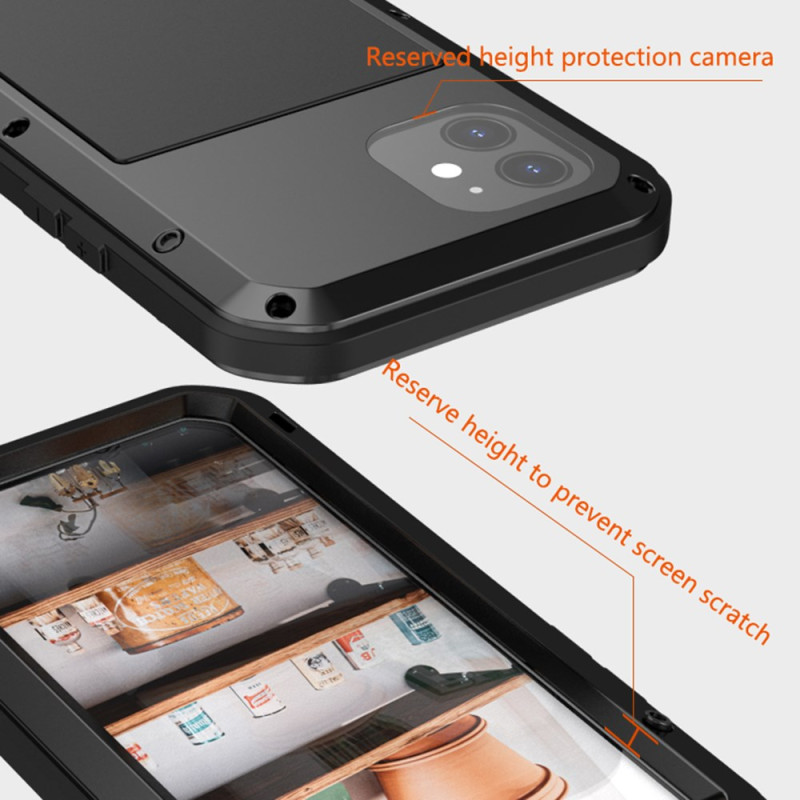Descubre nuestra funda protectora completa para iPhone 12, que ofrece una seguridad excepcional. Fabricada en metal y silicona de alta calidad, ofrece una protección completa contra golpes, caídas y polvo. Con su sistema de cierre de rosca y la lámina de cristal templado integrada, tu dispositivo se mantiene seguro. La función táctil de la pantalla sigue siendo totalmente operativa cuando el teléfono está en la funda.