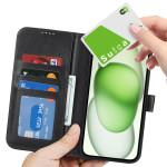 Funda cartera multifunción para iPhone 13 Mini en piel de PU de alta calidad. Incluye 3 ranuras para tarjetas, 1 bolsillo lateral, cierre magnético seguro y función de soporte. Protección reforzada contra golpes con doble borde para una máxima durabilidad.