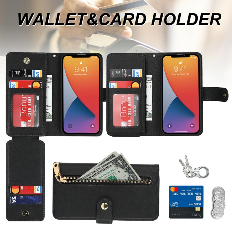 Protege y lleva tu iPhone 13 mini con estilo gracias a esta funda cartera multifuncional de piel de PU. Con múltiples ranuras para tarjetas, un compartimento con cremallera y dos correas de hombro extraíbles, combina elegancia y practicidad para el uso diario.