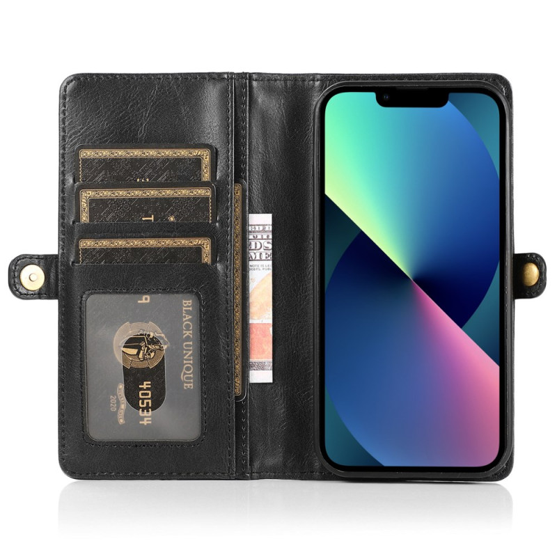 Protege tu iPhone 13 mini con estilo con esta funda cartera 2 en 1 desmontable. Su ingenioso diseño magnético combina una fina funda trasera con una práctica cartera con solapa, ranuras para tarjetas y cierre magnético.