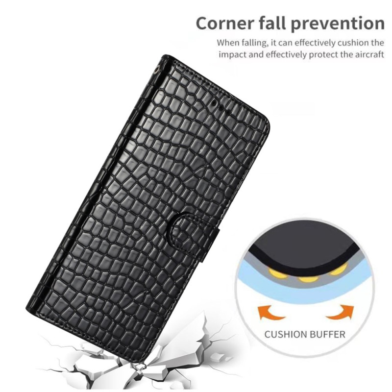 Protege tu iPhone 13 Mini con estilo gracias a esta funda cartera con textura de cocodrilo. Con un cierre magnético seguro, 3 ranuras para tarjetas y una práctica colgante de mano, combina estilo y funcionalidad para el uso diario.