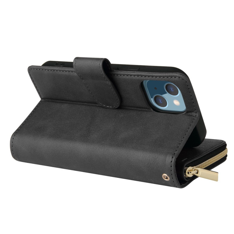 Funda cartera multifunción para iPhone 13 Mini con 9 ranuras para tarjetas, bolsillo con cremallera, cierre magnético seguro y soporte de visualización. Incluye una práctica colgante de mano para facilitar su transporte diario.