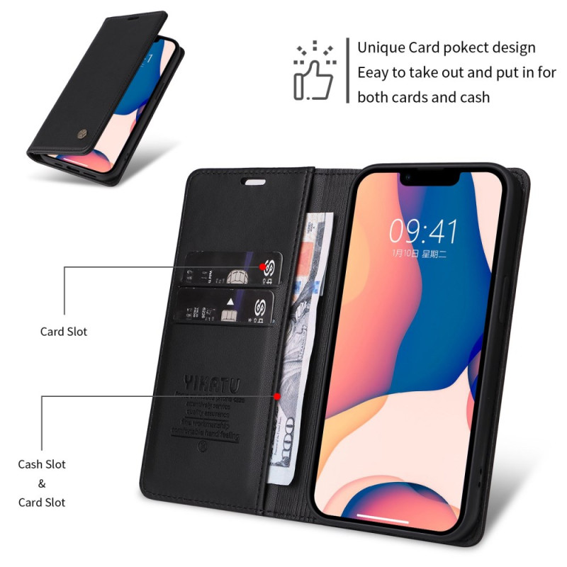 Protégez votre iPhone 13 Mini avec style grâce à cet étui portefeuille multifonction. Doté de deux emplacements pour cartes, d'une poche pour espèces et d'un support mains libres, il allie élégance et praticité au quotidien.