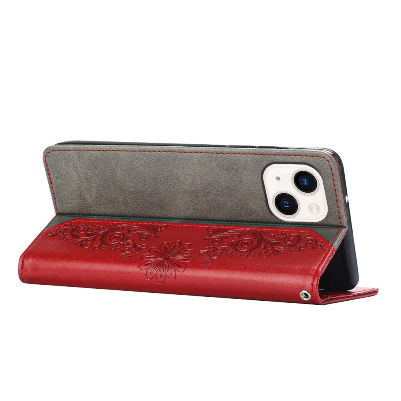 Proteja su iPhone 13 Mini con estilo gracias a esta funda cartera multifunción. Diseño de mariposa y flor grabado para un aspecto único. Incluye 2 ranuras para tarjetas y 1 bolsillo para efectivo, con cierre magnético seguro.