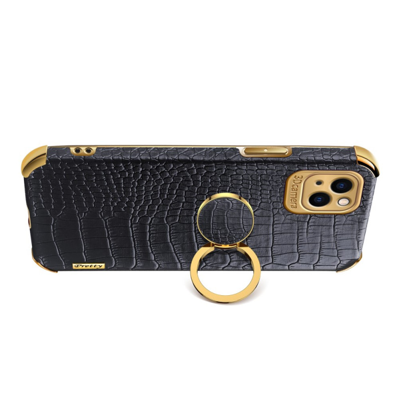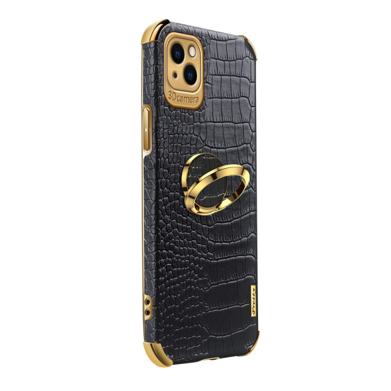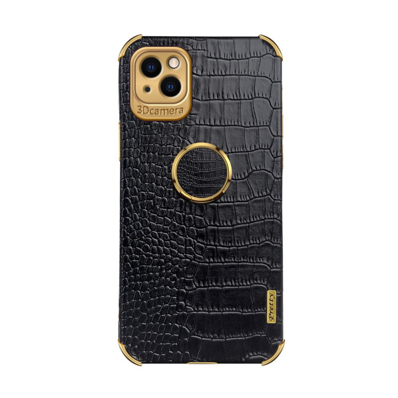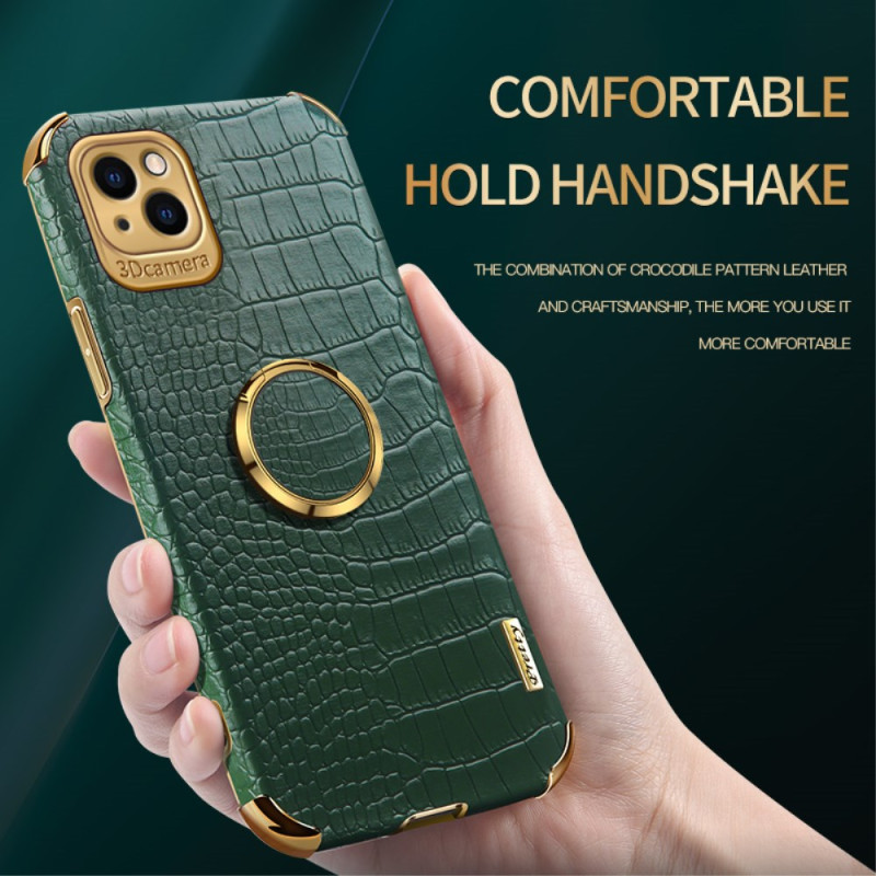 Protege tu iPhone 13 Mini con estilo con esta funda premium con textura de cocodrilo. Con un anillo de soporte multifuncional que hace a la vez de pata de cabra y es compatible con soportes magnéticos para coche, combina estilo y practicidad para el uso diario.