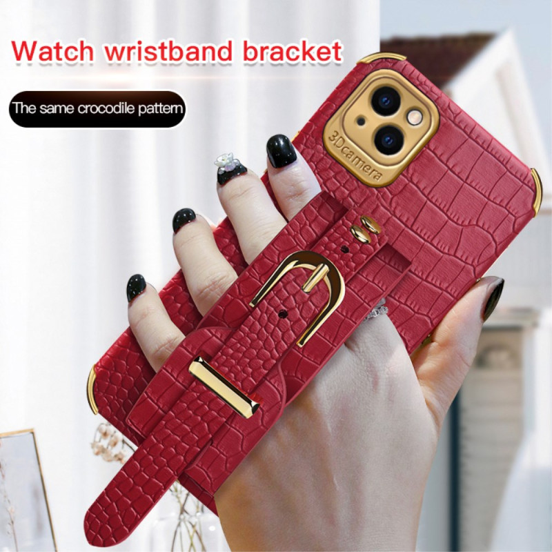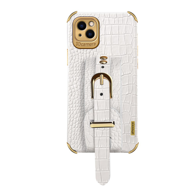 Protege tu iPhone 13 mini con estilo gracias a esta sofisticada funda con textura de cocodrilo. Su práctica colgante te permite llevar el teléfono en la muñeca para transportarlo de forma fácil y segura, al tiempo que añade un toque de estilo a tu día a día.