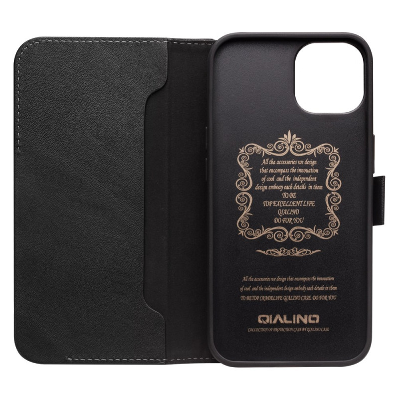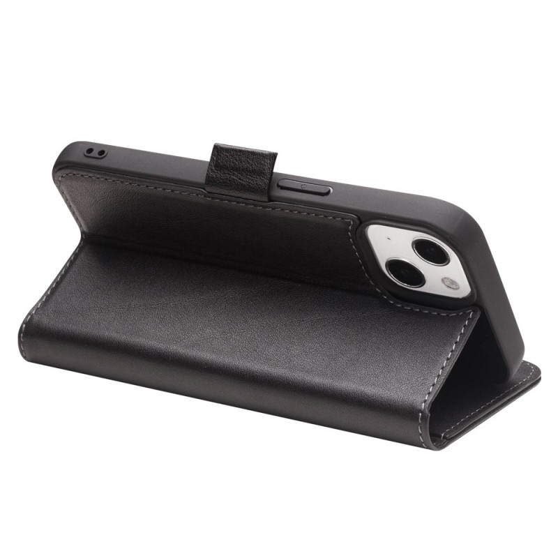 Elegante funda protectora tipo cartera para iPhone 13 Mini. Diseño sofisticado con doble cierre magnético, función de soporte integrada y ranuras para tarjetas. Protección óptima para su smartphone contra golpes y arañazos.