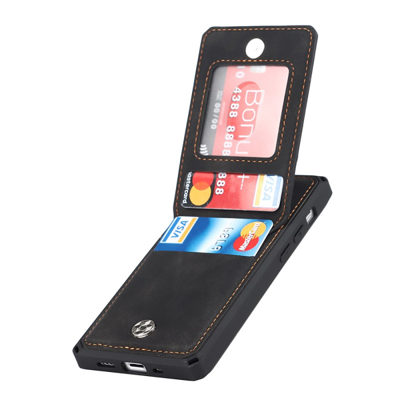 Proteja su iPhone 13 Mini con estilo gracias a esta funda vertical multifunción con solapa. Con múltiples tarjeteros, una práctica colgante de mano y un soporte integrado para ver tus contenidos con las manos libres. Cierre seguro con botón magnético.