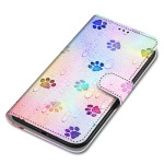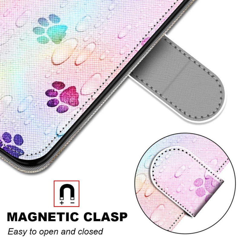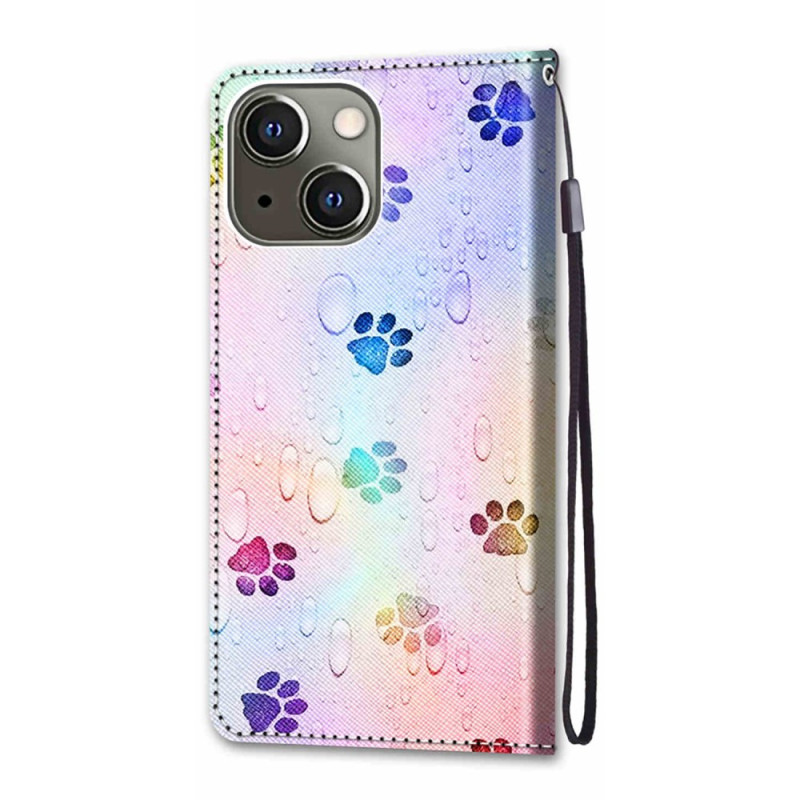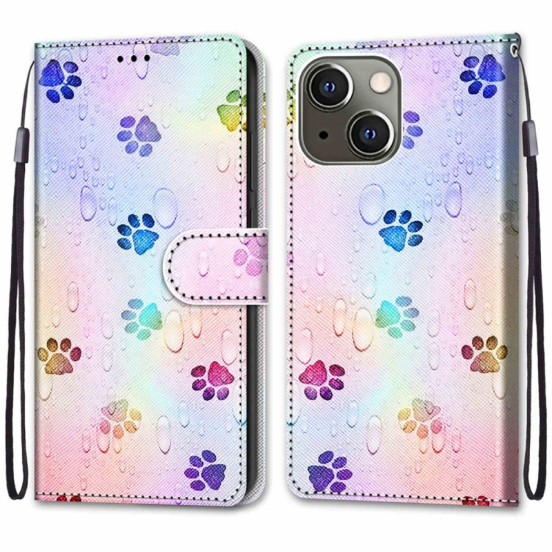 Descubra esta elegante funda-cartera para el iPhone 13 Mini con un encantador motivo de patas. Con un práctico soporte desplegable, ranuras para tarjetas integradas y una colgante de mano extraíble, combina estilo y funcionalidad.