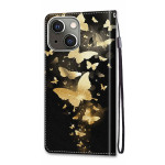 Protege tu iPhone 13 Mini con estilo gracias a esta funda cartera con motivo de mariposa dorada. Con un práctico soporte desplegable, ranuras para tarjetas y una colgante de mano, combina estilo y funcionalidad para simplificar tu día a día.